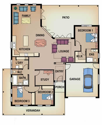 Consisting of 3 bedrooms plus study or 4 bedrooms, 3 open living areas, generous size bathroom and laundry and internal access to the double garage, this 30.9 square would be great on acreage in the country or in the heart of the city, as displayed in Craigieburn Vic. |